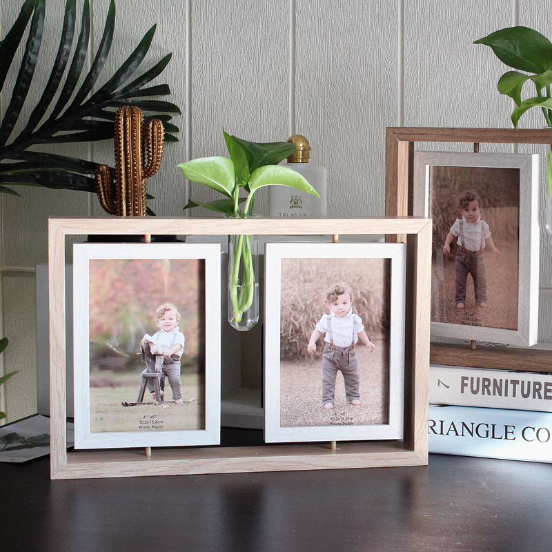 Material: Artificial boardDimensions: 41 x 22 x 4.5 (cm)Color: Coffee, Natural wood colorModel: Photo frame stand